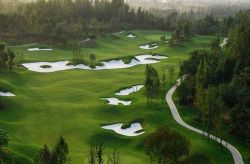 蓝光观岭高尔夫球场地处山水之城四川成都金堂县,以森林溪谷为基础,巧妙地将草地、湖泊、沙地和树木等自然景观融合在一起,由国内最具知名度的专业高尔夫管理公司朝向公司依原生地貌就势进行承建。其坐拥原野生动物园的天然植被和地貌,通过精致的景观打造,发挥山清水秀这一得天独厚的自然环境优势,旨在打造西南乃至全国著名的天然浅丘球场。