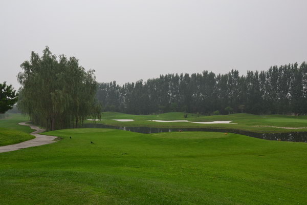 有趣的四杆洞,球道左侧有个巨大的人工湖,落球点两侧各有一个沙坑,一排高大的杨树将球道一分为二,双球道设计是否正合您自我挑战的心理,冒险但更有乐趣。