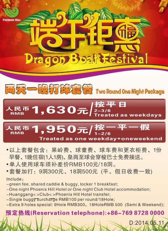 1630元2天1晚 东莞凤凰山高尔夫球会端午巨惠