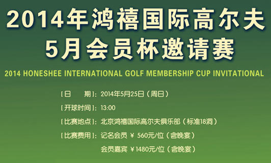 5月鸿禧会员杯邀请赛开始报名啦!2014年的会员杯比赛共计6场,按照每一场比赛的杆数对应的积分进行累计,在年终会员杯评出年度总冠军,年度排名前25名,最佳参与奖10名!欢迎大家踊跃参加~