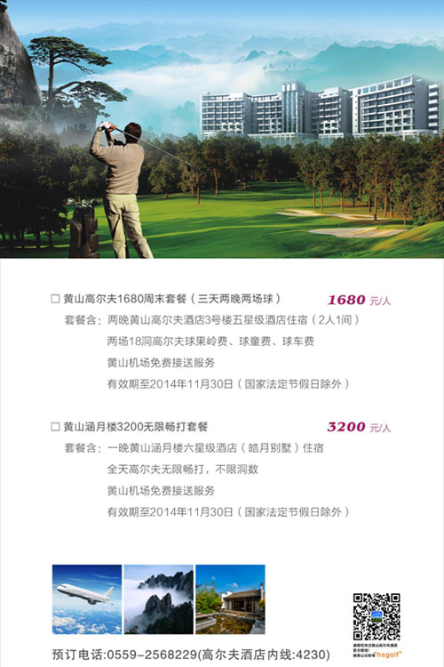 1680元/人 安徽黄山松柏高尔夫2014球会套餐