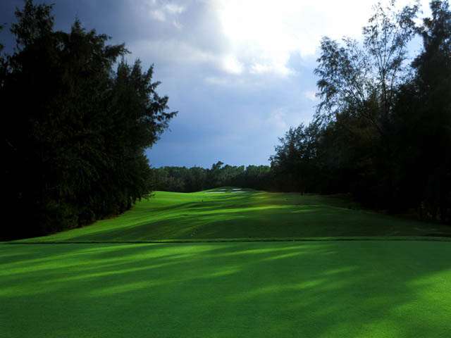 4杆洞,蓝T距离387码,要开个好头并不容易,小白球直飞树林可不是件好事,第一杆只须轻轻将球放在球道220码的位置,避免了左右沙坑的障碍,随着第一杆的球路,球员很快被浸没在球道两侧郁郁葱葱的植被中,令人心情舒畅,仿佛在畅览古老的“奥古斯塔”,当您回过神来挥洒第2杆时,切勿过分追求距离,长年的顺风及果岭后侧急剧的下坡,随时有可能带您去树林做客。