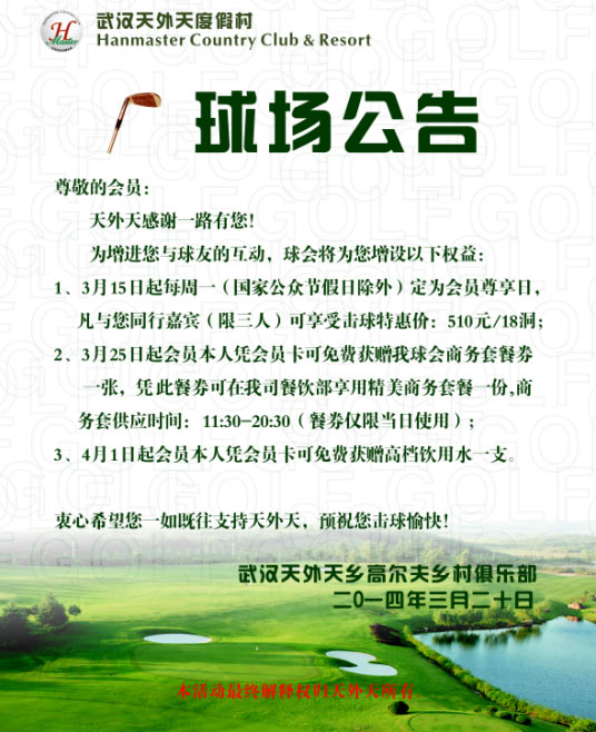 510元/18洞 武汉天外天高尔夫会员尊享日特惠