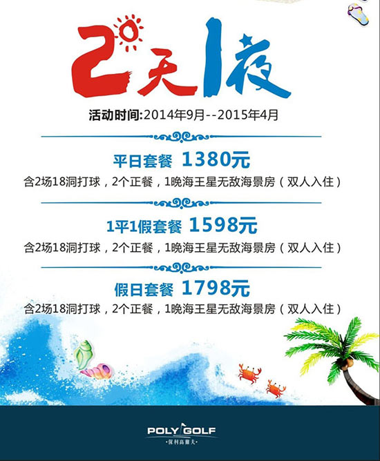 1380元/2天1夜 阳江保利南海I号高尔夫套餐优惠