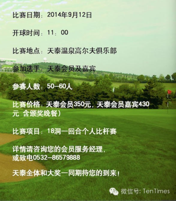 报名-青岛天泰温泉高尔夫俱乐部九月月例赛