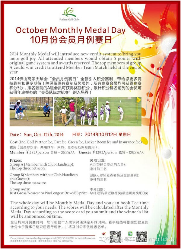 报名-广东佛山高尔夫球会10月会员月例赛