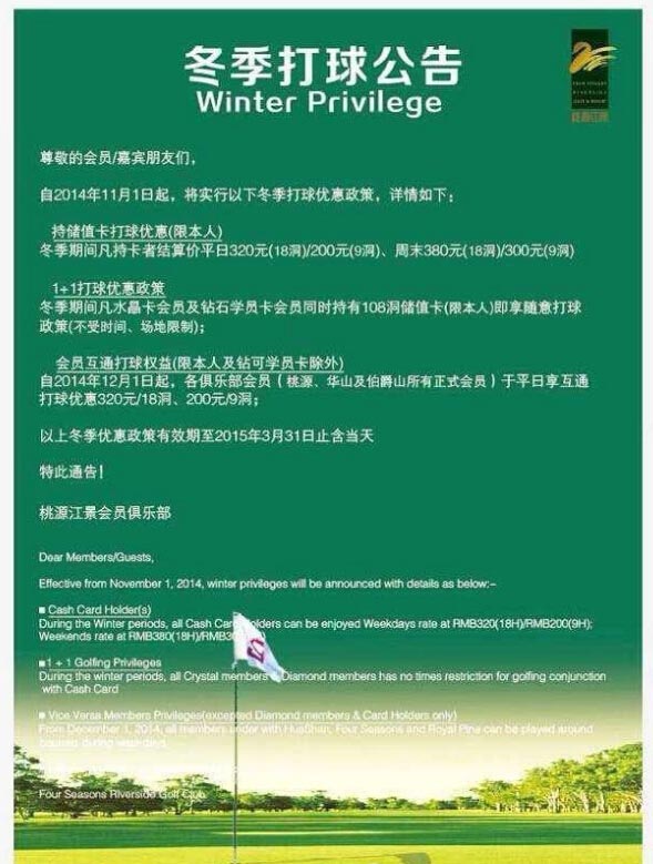 320元/18洞 青岛桃源江景冬季高球推广特惠