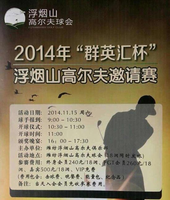 报名:潍坊浮烟山11月15日群英会杯邀请赛