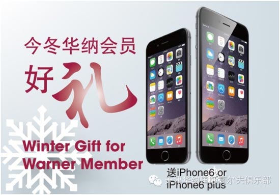 于2014年10月28日到12月31日期间加入天津华纳高尔夫俱乐部的新会员, (个人会籍、公司会籍、家庭会籍) 除去享有优惠组合,将获赠一部iPhone 6 plus
