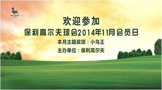 保利高尔夫球会11月份会员日活动定于2014年11月18日在保利球会北场举行。本次会员日开球方式为不同时开球。名额有限,报完即止。