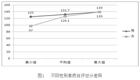 表1 不同性别素质自评总分的方差分析