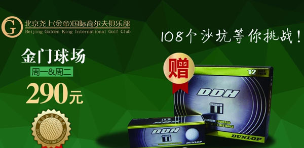 290元 北京金帝高尔夫12月22日/23日挑战金门球场