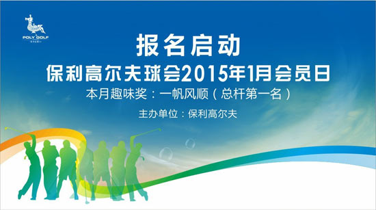 2015年1月份会员日活动将于1月18日在保利南场举行,本月的趣味奖项为:一帆风顺(总杆第一名)。活动不同时开球,您可按照自己的时间选择在有效预订时间内下场。