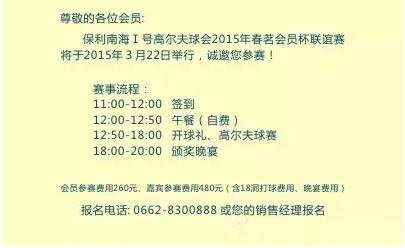 报名-广东保利南海1号高尔夫2015年春茗会员杯赛