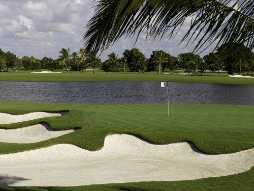 多拉高尔夫度假村的老板唐纳德·特朗普拉上设计师吉尔·汉斯,为著名的蓝魔球场增添了大量水障碍,以及防不胜防的 “魔牙”。