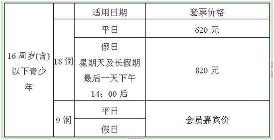 备注:16周岁(含)以下的会员子女享受免费使用练习场及练习果岭的优惠。