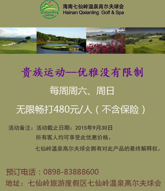 480元/人 海南七仙岭温泉高尔夫球会假日畅打