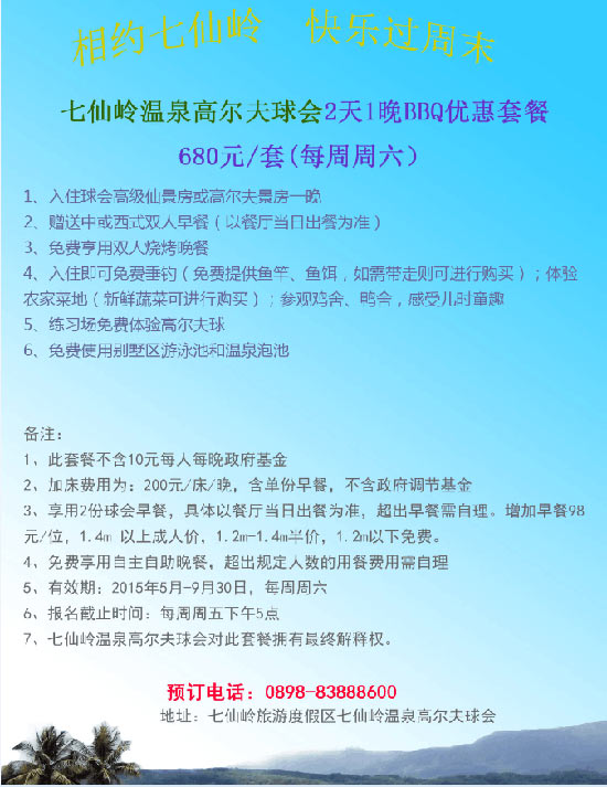 680元/套 海南七仙岭温泉高尔夫球会BBQ优惠