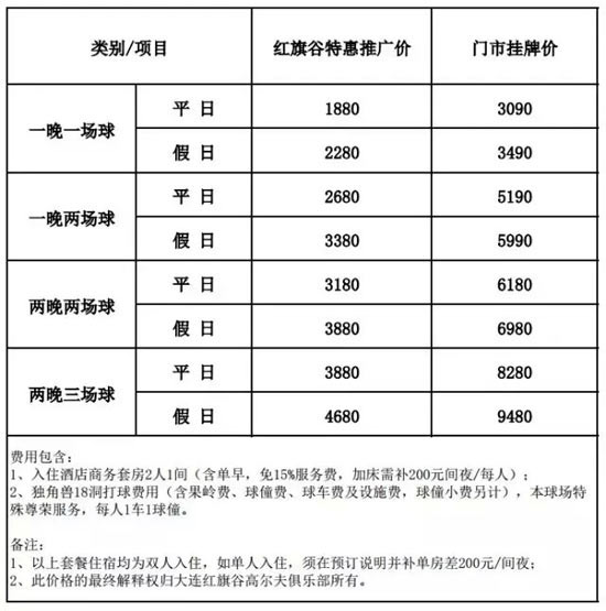 1880元1晚1场球 2015大连红旗谷高尔夫特惠套餐