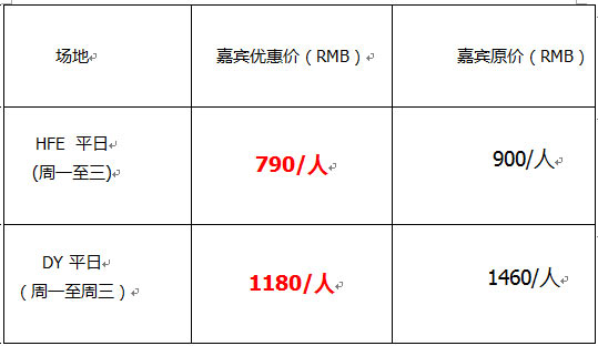 1.HFE场:周一至四(平日),会员嘉宾可享受RMB700元打球全包优惠价。