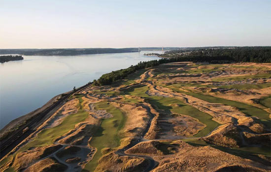 1.这是美国公开赛第一次在纯粹的沙地上举办。这座球场开阔如碗状,向西侧倾斜至一段火车轨道和壮阔的普吉特海湾,东侧是一道高耸而绵长的峭壁。著名的观景大道(Grandview Drive)就位于峭壁之上,比赛期间,游客们可以停车向下看到25米之下的小麦和老米。