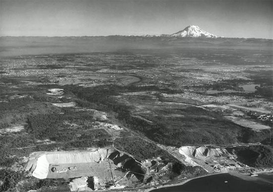 19世纪90年代,这里开始成为一座砂石场。接下来的一个世纪中,这里为65公里外的西雅图提供了城建的大量建材。对高尔夫爱好者来说,幸运的是这些年里被移除的主要是石材而非砂砾。1992年华盛顿州皮尔斯县买下了这块36平方公里(约900英亩)的土地,但采石业一直持续至2001年,直到强势的检察官约翰•拉 登伯格当选市长。拉 登伯格认为,这块滨海的土地应该改造成一片包括棒球场、徒步专用道以及一座高尔夫球场的公共休闲区。