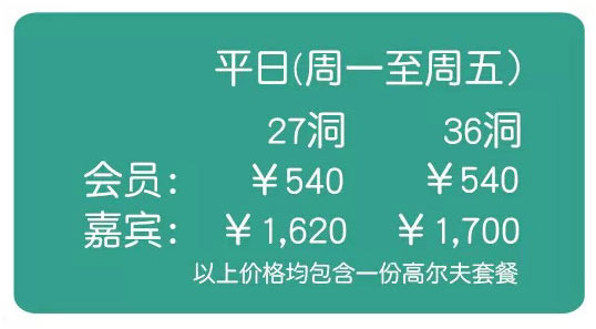 备注: 有效日期为2015年7月1日-31日 以上价格不与其他优惠同时享用。 最终解释权归览海国际高尔夫俱乐部所有。 VIP专线:021-59436198