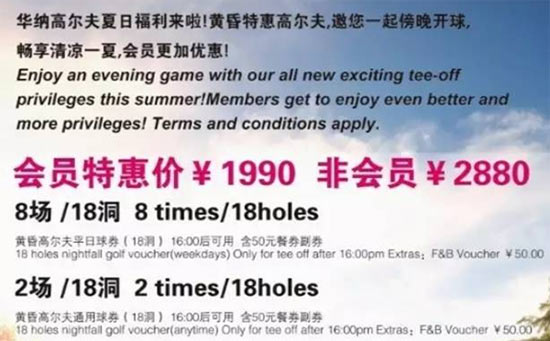 1990元/8场 天津华纳国际高尔夫夏日黄昏特惠