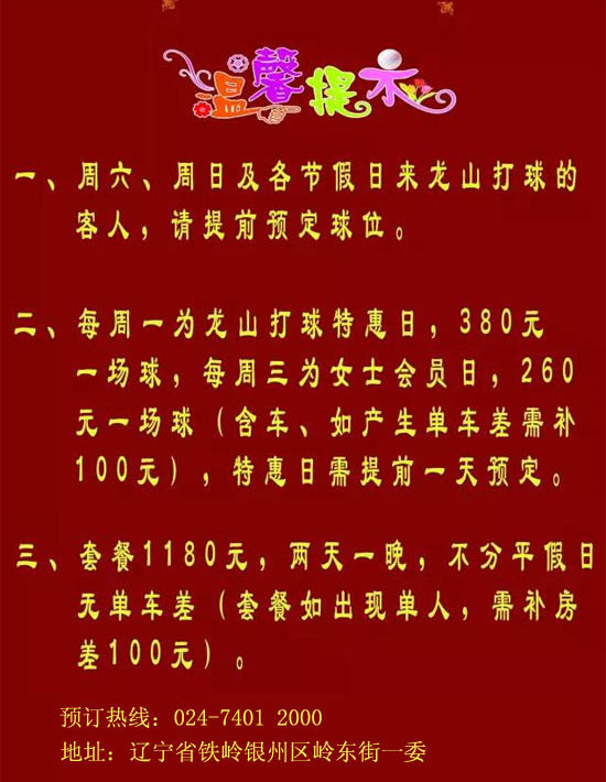 女士260元 辽宁铁岭龙山高尔夫俱乐部击球特惠