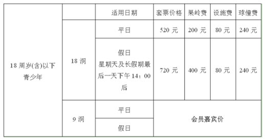 备注:18周岁(含)以下的会员子女享受免费使用练习场及练习果岭的优惠。