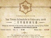 昆明玉龙湾高尔夫2018年二月及春节期间开球时间安排