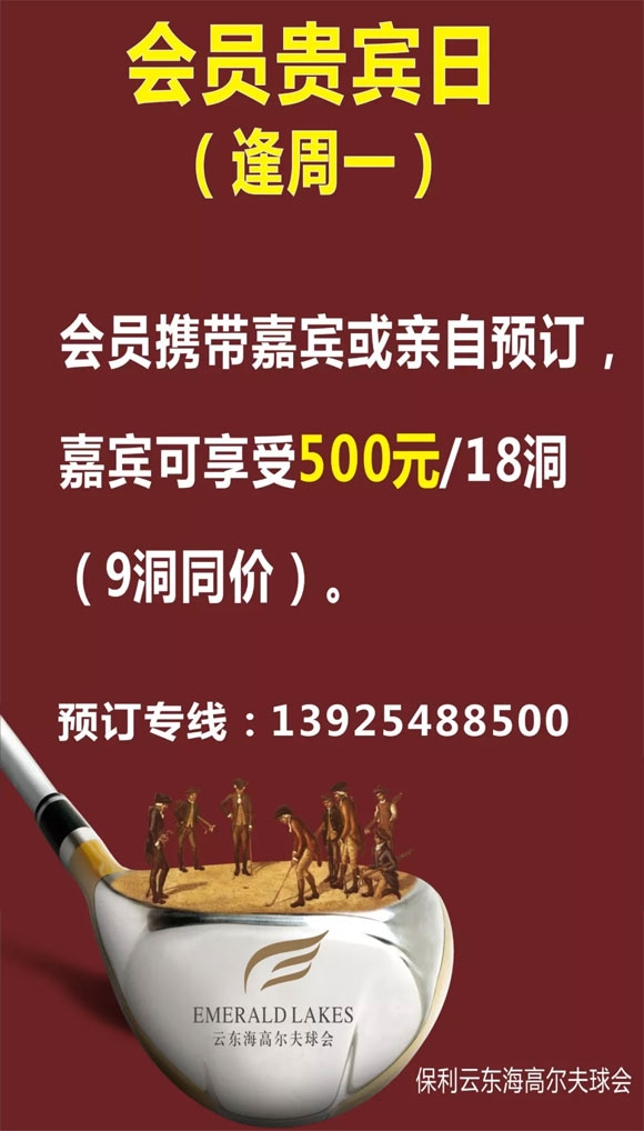 佛山保利云东海高尔夫逢周一会员贵宾日 500元/18洞