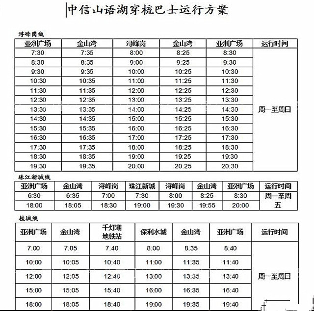 佛山中信山语湖(会山湖)高尔夫穿梭巴士时间表