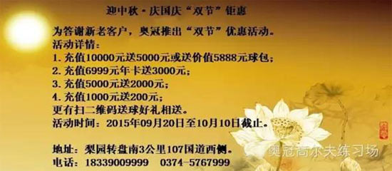 河南许昌奥冠高尔夫练习场迎“双节”钜惠
