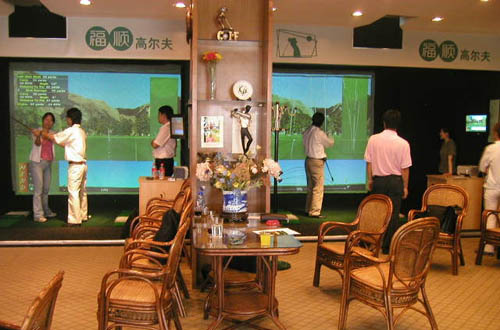 上海福顺室内高尔夫练习场,采用美国进口先进模拟设备,综合了球场和练习场两方面的强大技术功能,可以足不出户尽情随意地在40个职业PGA高尔夫球场畅打。