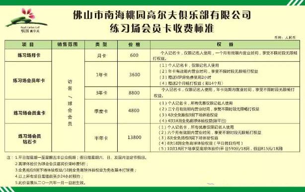 佛山南海桃园高尔夫练习场会员卡收费标准