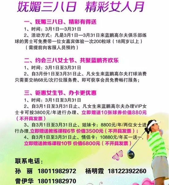 68元畅打 广州蓝鹏高尔夫3月“精彩女士月”
