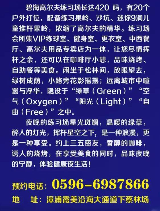福建漳州碧海国际高尔夫练习场介绍