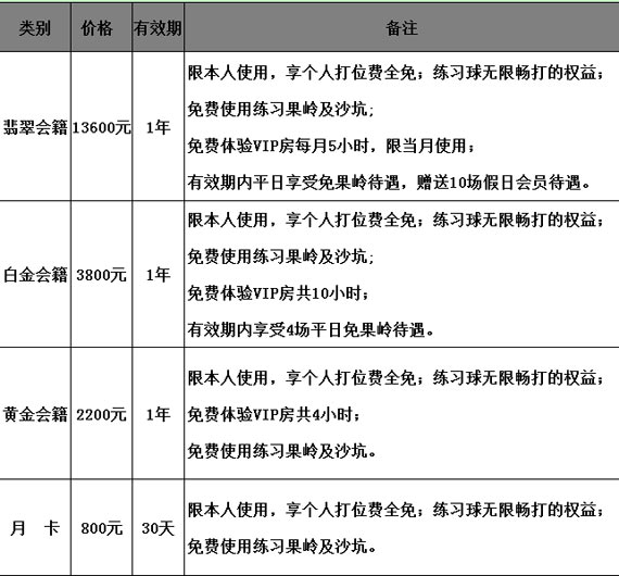 广州仙村国际高尔夫练习场会籍种类及价格