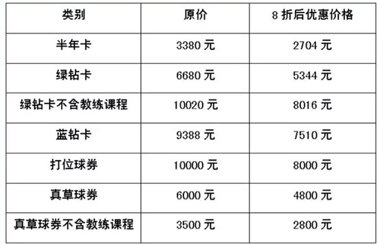 2016年6月1日至2016年6月30日凡购买本练习场会员卡或球券的新、老客户都可享受8折的优惠,打折后不开发票。