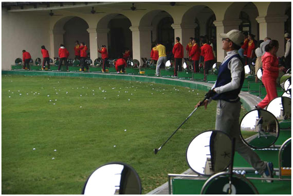 练习场内环境高雅,各种先进完备的设施和独具匠心的装潢设计,将带给您耳目一新的感觉。 同时会所设有豪华的VIP室,可供私密性的商务洽谈及冠名权房;一楼会所内设有高尔夫用品专卖店、餐厅、咖啡吧等,为客人提供多功能的休闲、商洽、友聚的区域,环境优雅、视野开阔。照明设施一并俱全,即使在夜间也可以舒适地享受击球的乐趣。练习场引进美国橡树谷高尔夫学院,专业的教练团队是乐湾高尔夫为您享受高尔夫运动的时尚魅力与高尔夫文化的诚心之举,致力于将高尔夫的尊贵与健康带给您。