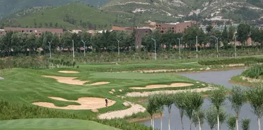 天津盘山高尔夫球会北依盘山,球场规模为36洞公园式国际标准高尔夫球场。AB场为18洞丘陵球场(已经开放),球场内种植了5000多棵果树,其中有柿子林、杏树林、桃树林、核桃林、李子林、苹果林、梨树林等,分布在不同的球道。果树林春季开花,夏季结果,秋季收获,球友在享受打球乐趣的同时,又可品尝鲜果的美味。C场9洞穿梭于湖泊之中,湖中奇石林立。除第27洞外,每洞都与湖水相邻。D场9洞分布在盘山脚下原有的果树林中,充分利用了原有地势。盘山36洞球场依山而建,与盘山地势结合,婉转曲折,妙趣横生,兼具挑战性和趣味性,是天津市目前仅有的一家依山傍水的公园式球场。