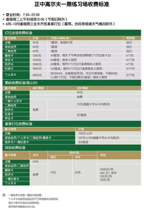 结合客户反馈以及练习场的具体运营情况,正中高尔夫练习场对价格表进行调整,并正式对外公告。其中: