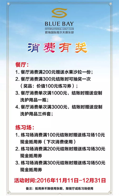 福建漳州碧海高尔夫练习场消费有 奖活动
