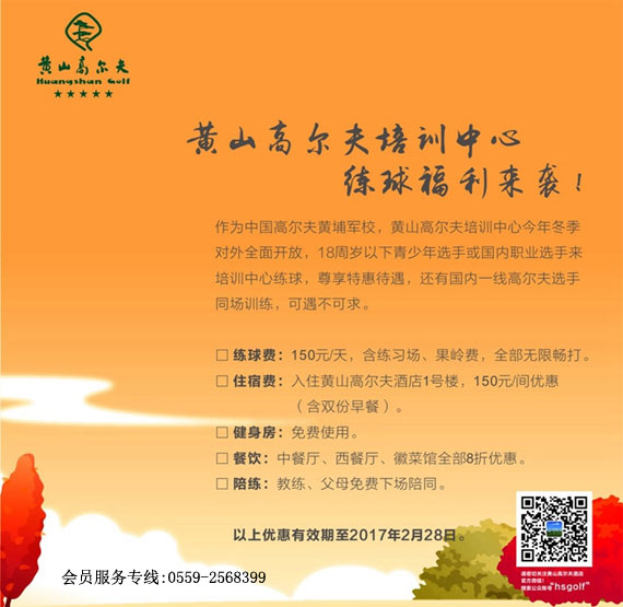 150元/天 黄山高尔夫培训中心练球福利来袭!