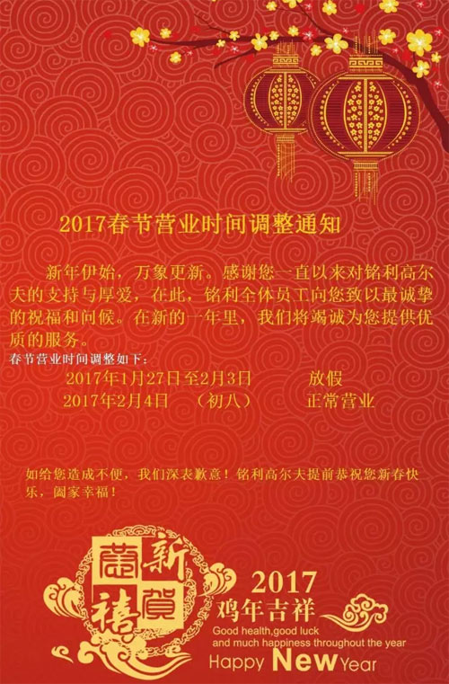深圳铭利高尔夫练习场春节营业时间调整通知