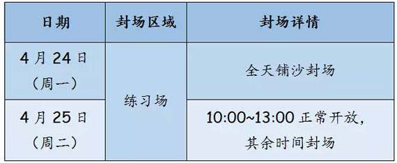 练习场封场安排: