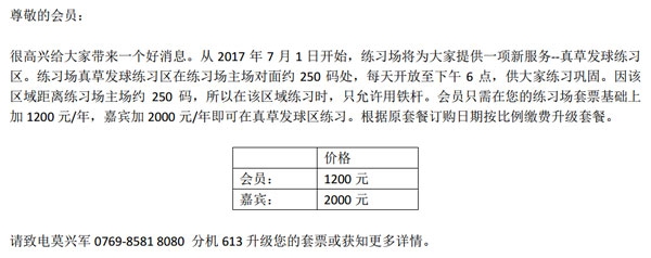 东莞海逸高尔夫练习场真草练习区开放通知