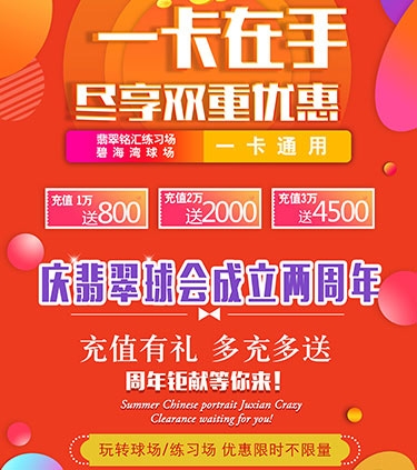 深圳翡翠铭汇高尔夫练习场开业两周年充值大放送