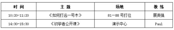 周年庆当天,重量级中、外籍教练的两场高尔夫公开课,为大家呈现一个前所未有的高尔夫嘉年华,满足不同技术水平和经验的高球爱好者的需求,一起来玩转高尔夫!